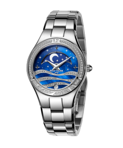 這款腕表的表殼采用不銹鋼材質(zhì),表殼尺寸為30*8mm,延續(xù)了瑞夫泰格Love Stars系列腕表的簡(jiǎn)潔線條。月相的設(shè)計(jì)獨(dú)特而和諧。其弧度符合人體工程學(xué)設(shè)計(jì),確保佩戴舒適。