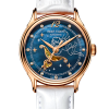 藍(lán)色 MOP 表盤,帶鉆石標(biāo)記。顯示小時(shí)、分鐘、秒。這款奢華腕表的表盤 12 點(diǎn)鐘位置印有品牌標(biāo)識(shí)。