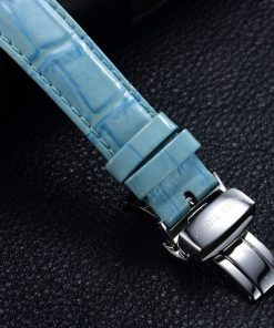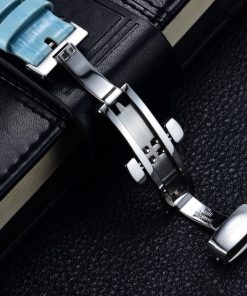 藍色漆皮表帶,配有折疊扣。