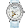 白色 MOP 表盤,帶鉆石標(biāo)記。時(shí)、分、秒顯示。這款奢華腕表的表盤 12 點(diǎn)鐘位置印有其標(biāo)志。