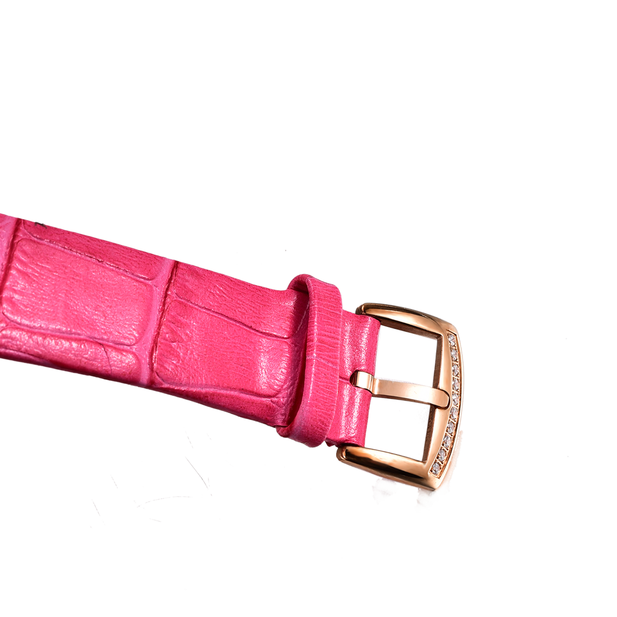 粉色正品小牛皮表帶,配有表扣。