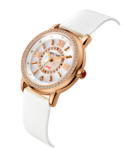 Love Promise 女士腕表。耐用的不銹鋼鍍玫瑰金,表圈上還鑲嵌施華洛世奇水晶,營造出專業(yè)的求婚和演示效果。耐用的聚酯前后蓋,協(xié)調(diào)一致。