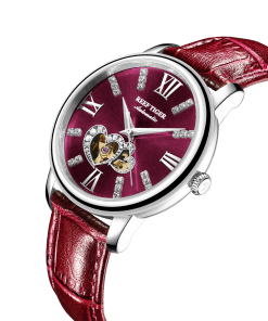 紫色表盤,帶羅馬數(shù)字鉆石標記。顯示小時、分鐘和秒。這款奢華腕表的表盤 12 點鐘位置印有品牌標識。