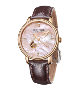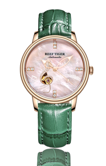 Reef Tiger Love Melody 腕表。耐用的玫瑰金表圈,還配有玫瑰金表圈,打造專(zhuān)業(yè)的提案和演示。耐用的聚酯前后蓋,協(xié)調(diào)一致。