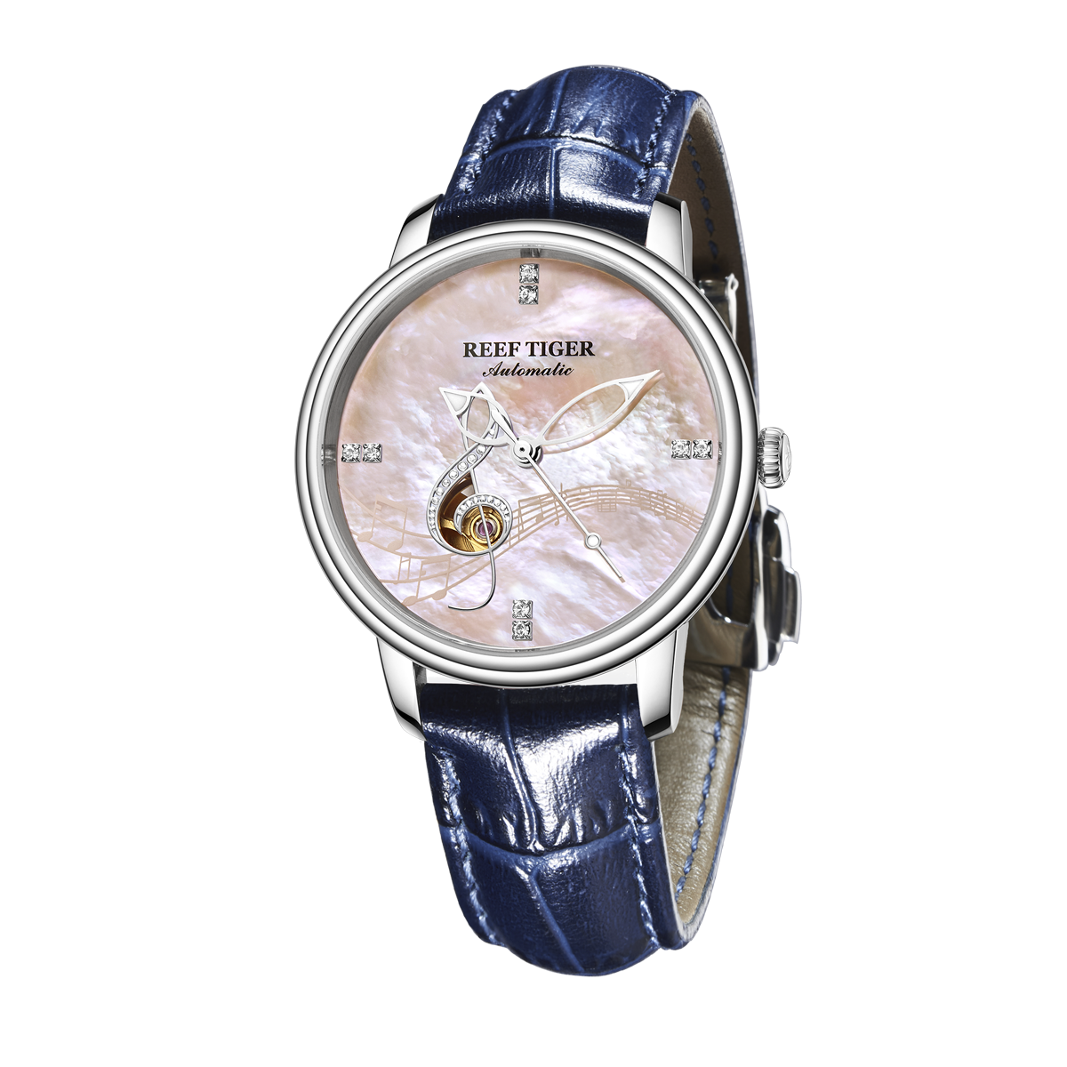 Reef Tiger Love Melody 腕表。耐用的鋼質(zhì)表圈,還配有打造專(zhuān)業(yè)外觀的提案和演示。耐用的聚酯前后蓋,協(xié)調(diào)一致。