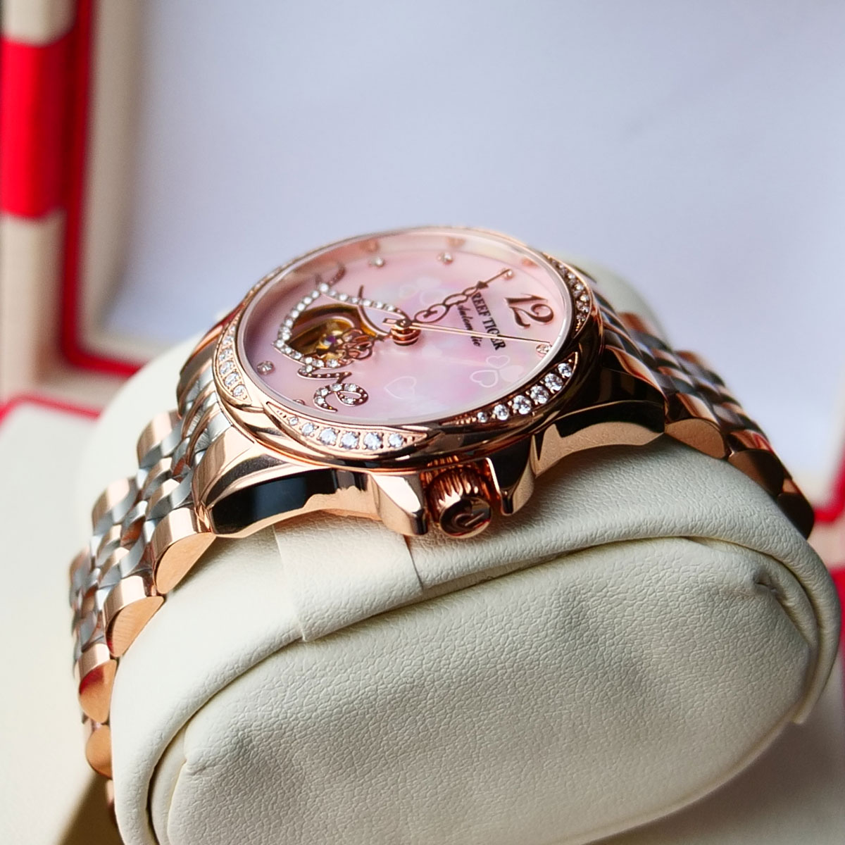 Love Double Heart 女士腕表。耐用的不銹鋼鉆石表圈還配有鉆石,打造專業(yè)的求婚和演示。耐用的聚酯前后蓋與表盤(pán)相得益彰。