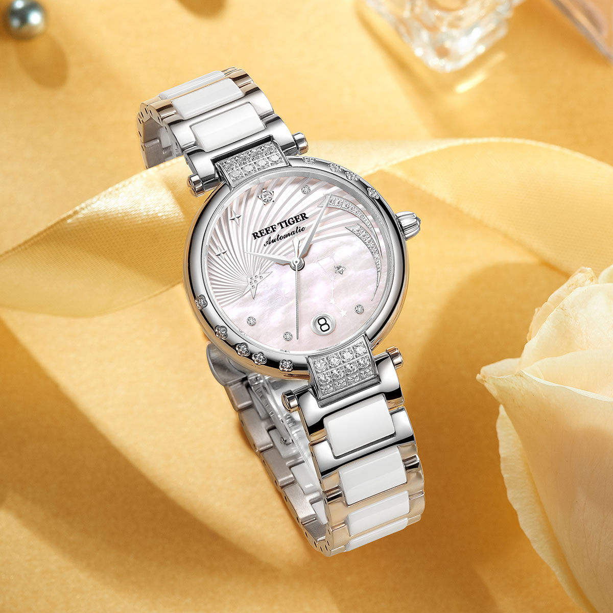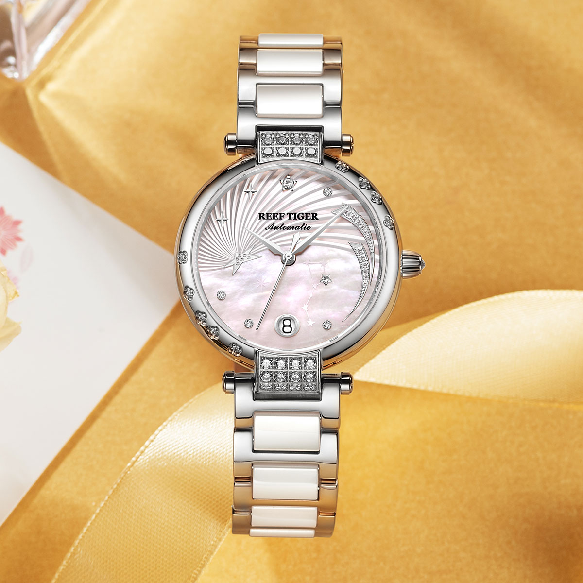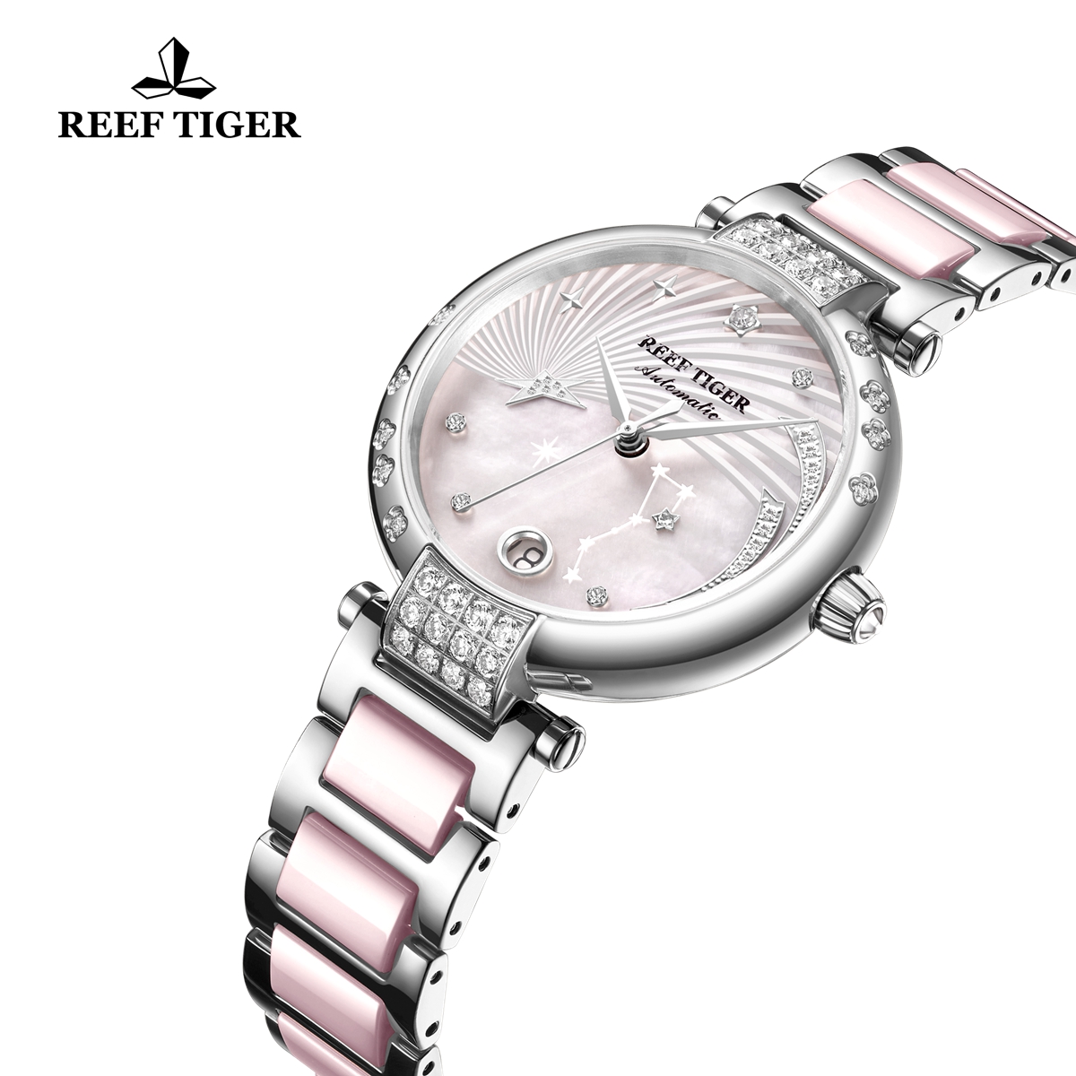 Reef Tiger Love Galaxy 腕表。耐用的不銹鋼表圈,還配有不銹鋼表圈,打造專業(yè)的提案和演示。耐用的聚酯前后蓋,協(xié)調(diào)一致。