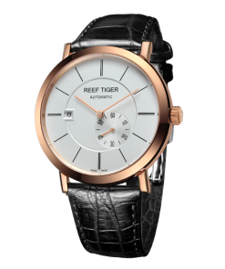 男士玫瑰金 Reef Tiger Seattle 簡約表帶手表。耐用的不銹鋼厚玫瑰金鍍層表身,還配有打造專業(yè)外觀的提案和演示。耐用的聚酯前后蓋,協(xié)調(diào)一致。