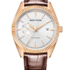 白色表盤,帶棒狀標(biāo)記。時(shí)、分、秒和日期顯示。這款奢華腕表的表盤 12 點(diǎn)鐘位置印有品牌標(biāo)識(shí)。