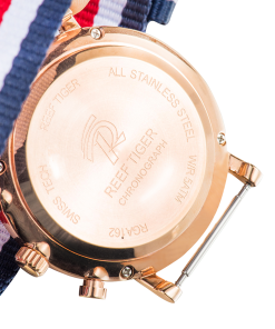 男士玫瑰金 Reef Tiger Seattle Mountain Rainier 手表。耐用的不銹鋼鍍玫瑰金,還配有打造專業(yè)提案和演示的配件。耐用的聚酯前后蓋,協(xié)調一致。