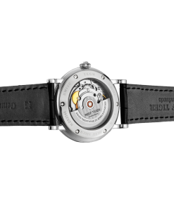 白色表盤,帶羅馬數(shù)字標(biāo)記。時(shí)、分、秒和日期顯示。這款時(shí)尚的男士手表在表盤 12 點(diǎn)鐘位置有其標(biāo)志。