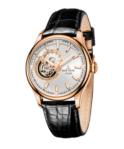 該款腕表表殼采用精鋼材質(zhì),局部鍍玫瑰金,表殼尺寸為44mm,延續(xù)了瑞夫泰格西雅圖腕表的簡(jiǎn)潔線條。表耳設(shè)計(jì)精致和諧,其弧度符合人體工學(xué)設(shè)計(jì),確保佩戴舒適。
