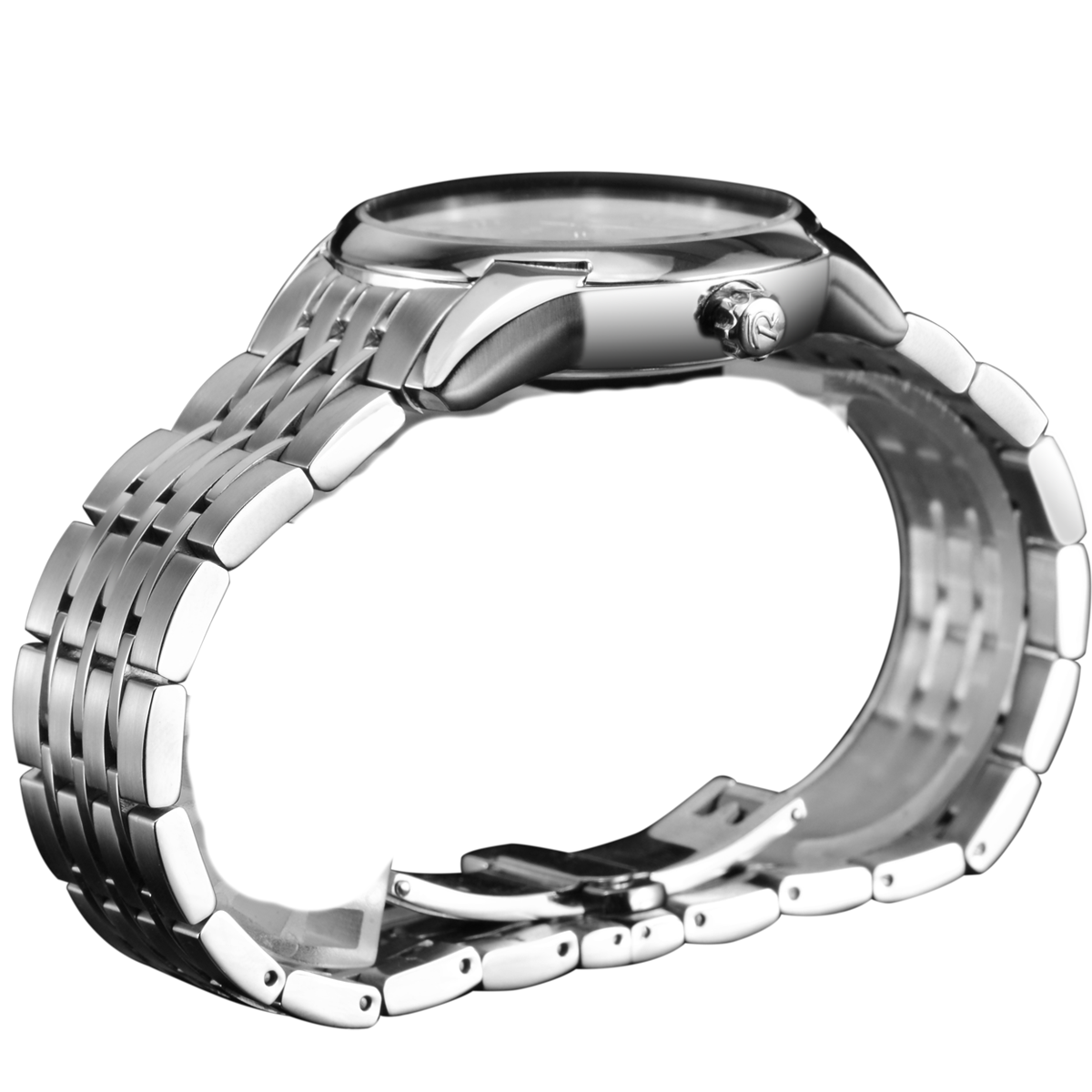 不銹鋼表帶,帶按鈕折疊表扣。