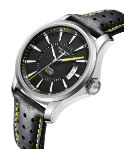黑色表盤,帶棒狀標(biāo)記。時(shí)、分、秒和日期顯示。這款豪華手表的表盤 12 點(diǎn)鐘位置印有其標(biāo)志。