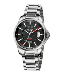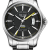 黑色表盤(pán),帶棒狀標(biāo)記。時(shí)、分、秒和日期顯示。這款豪華手表的表盤(pán) 12 點(diǎn)鐘位置印有其標(biāo)志。