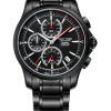 黑色表盤,帶條形標(biāo)記。計(jì)時(shí)碼表、小時(shí)、分鐘、秒和日期顯示。這款豪華腕表的表盤 3 點(diǎn)鐘位置印有其標(biāo)志。