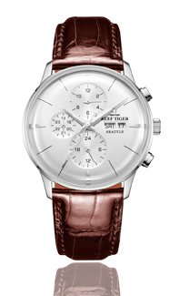 Reef Tiger Seattle Chief 腕表。耐用的鋼質(zhì)表圈還配有專業(yè)級(jí)的提案和演示。耐用的聚酯前后蓋,協(xié)調(diào)一致。