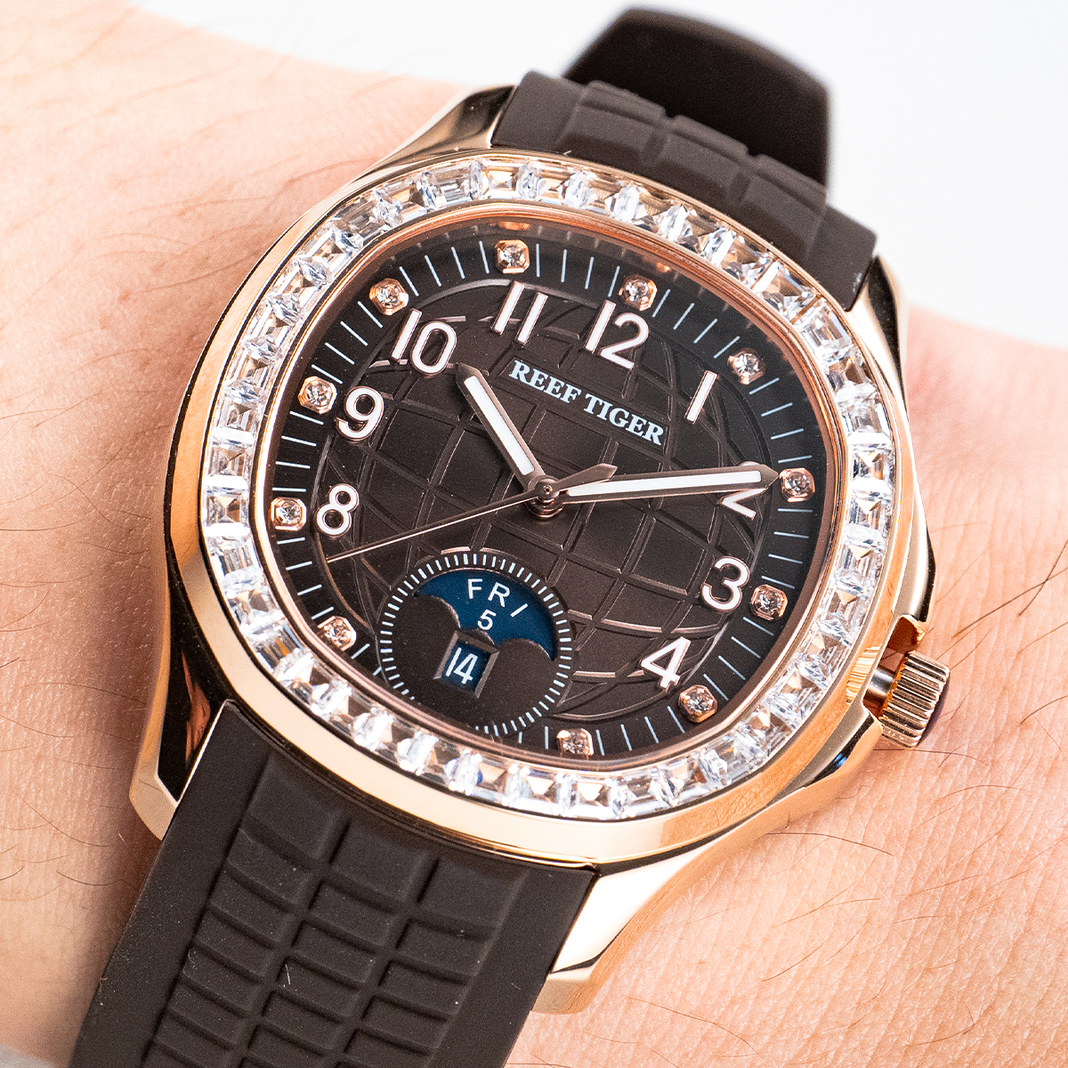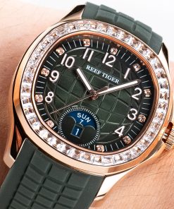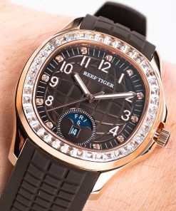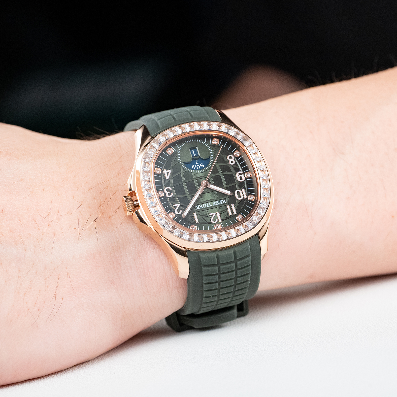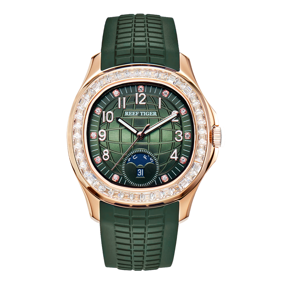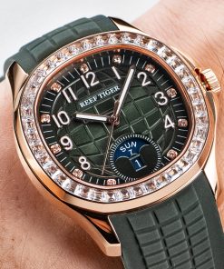 Reef Tiger 設(shè)計(jì)師男式鉆石方形表盤(pán)自動(dòng)多功能夜光橡膠運(yùn)動(dòng)手表 RGA1805-PNNRD