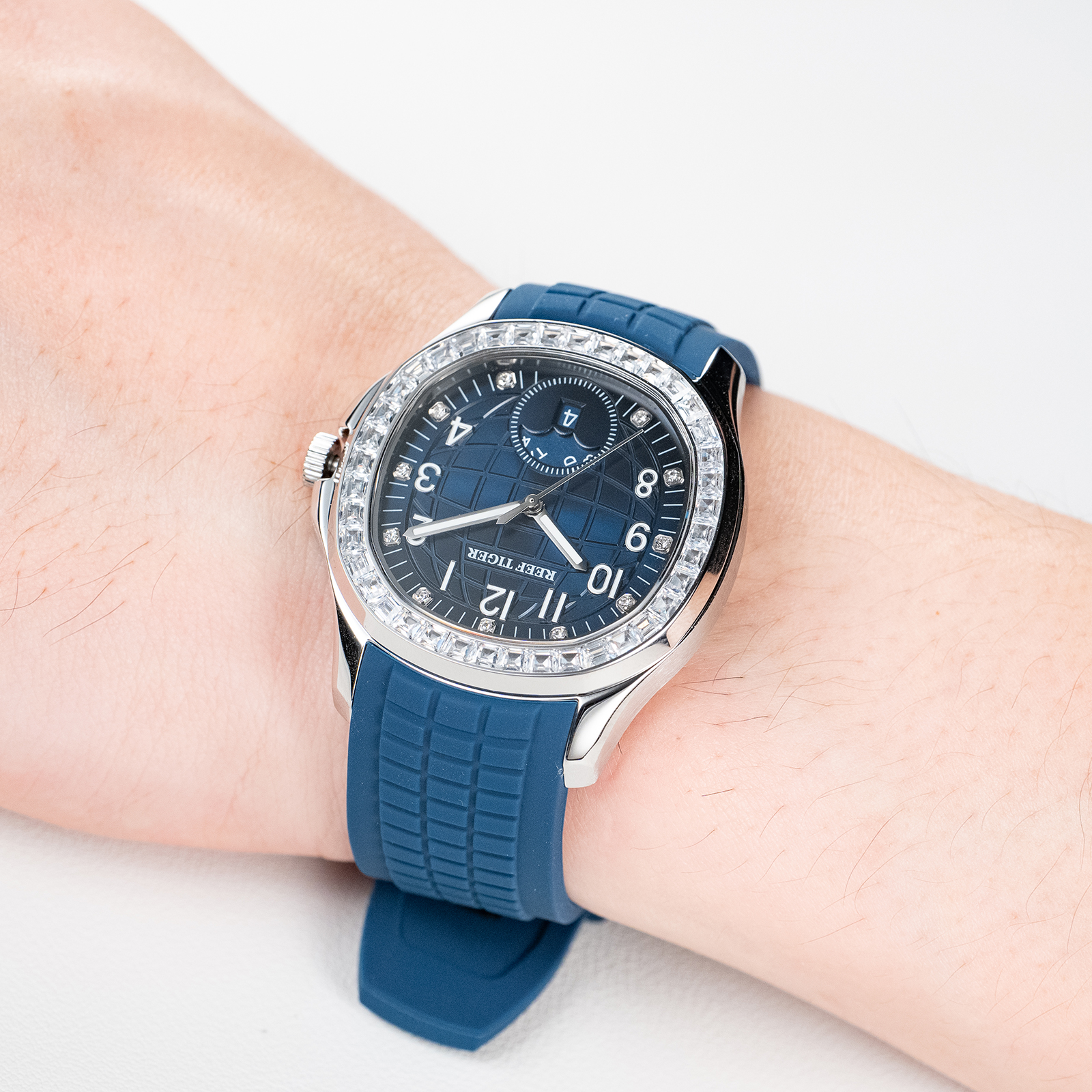 Reef Tiger 設(shè)計師男式鉆石方形表盤自動多功能夜光橡膠運動手表 RGA1805-YLLRD