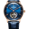 黑色表盤,帶棒狀標(biāo)記。時、分、秒和陀飛輪顯示。這款奢華腕表的表盤 12 點鐘位置印有品牌標(biāo)識。