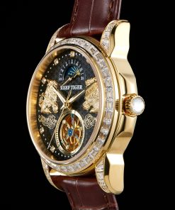 Reef Tiger 貔貅多功能男士鉆石皮革表帶自動手表 RGA1935-PBSD