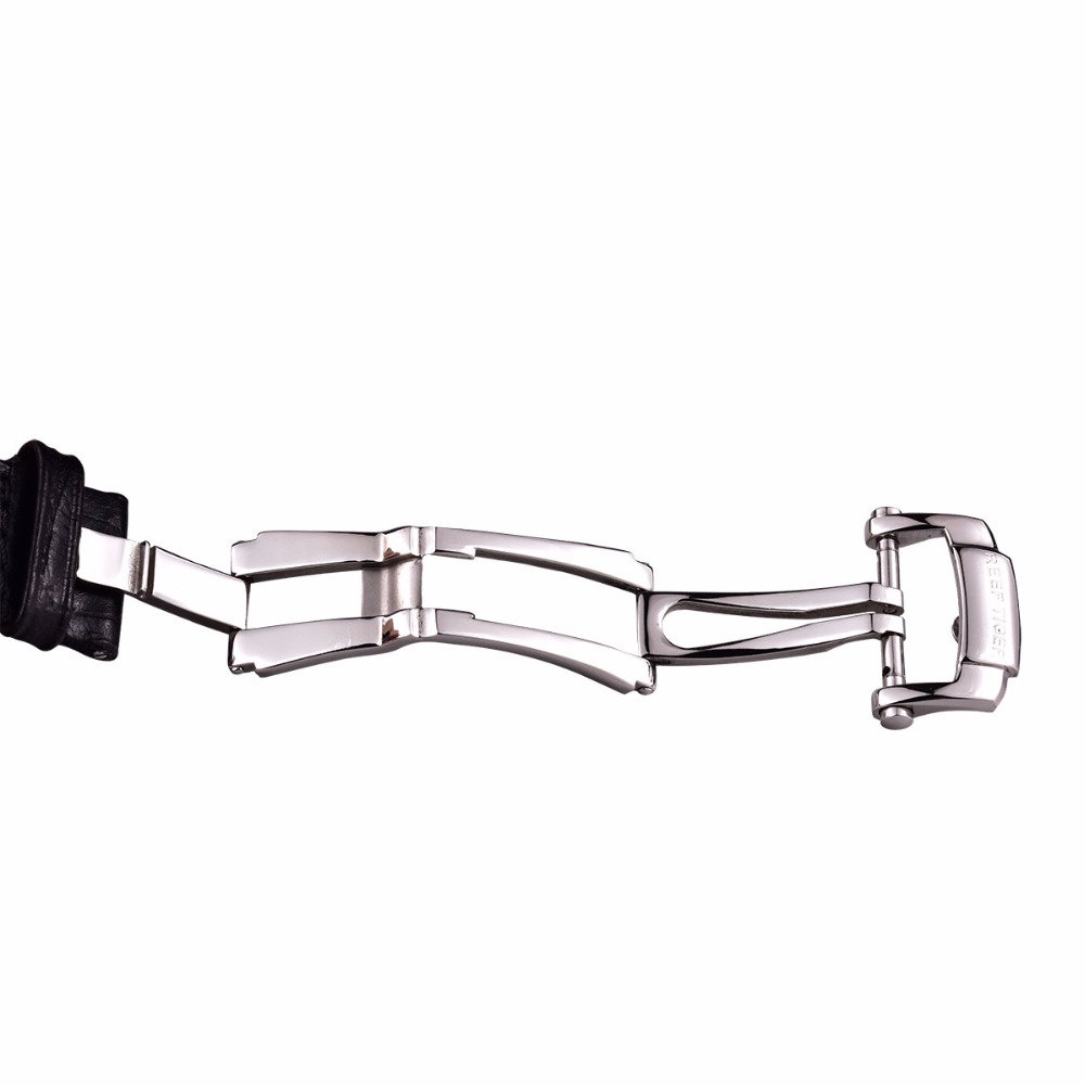 柔軟舒適的皮質(zhì)表帶,配有折疊扣。