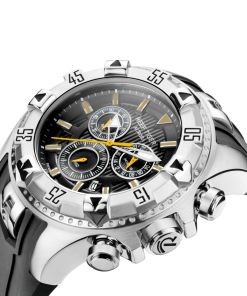 黑色表盤,帶 Super-LumiNova 標(biāo)記和三個(gè)子表盤。計(jì)時(shí)碼表、小時(shí)、分鐘、秒和日期顯示。這款豪華腕表的標(biāo)志位于表盤 12 點(diǎn)鐘位置。