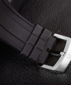 柔軟舒適的黑色橡膠表帶,配有表扣。