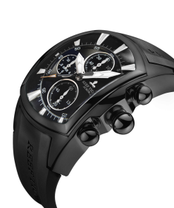 柔軟舒適的黑色橡膠表帶,配有表扣。