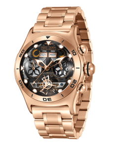 Aurora Ari Bubble 鏤空腕表。耐用的不銹鋼鍍玫瑰金,固定表圈也適合打造專業(yè)的提案和演示。耐用的聚酯前后蓋,協(xié)調(diào)一致。