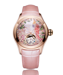 Reef Tiger Aurora 鸚鵡腕表。耐用的玫瑰金表圈,還配有玫瑰金表圈,打造專業(yè)的提案和演示。耐用的聚酯前后蓋,協(xié)調(diào)一致。