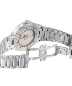 白色表盤帶棒狀標(biāo)記。時、分、秒和日期顯示。這款豪華腕表在表盤 12 點鐘位置印有其標(biāo)志。