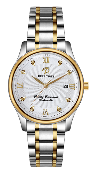 瑞士 Reef Tiger RT7101 自動(dòng)機(jī)芯,可靠性高,精準(zhǔn)度高,寶石數(shù)高,28,800vph,26 顆寶石,可提供 42 小時(shí)動(dòng)力儲(chǔ)存