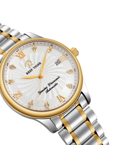 白色風(fēng)車(chē)表盤(pán)。這款雙色手表采用經(jīng)典的圓形表殼,搭配白色風(fēng)車(chē)表盤(pán)(鉆石刻度)和日期功能,非常適合男士佩戴。
