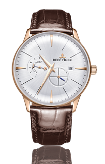 Reef Tiger 經(jīng)典工匠腕表。耐用的玫瑰金表圈,還配有玫瑰金表圈,打造專業(yè)的提案和演示。耐用的聚酯前后蓋,協(xié)調(diào)一致。