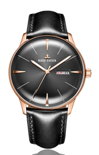 Reef Tiger 經(jīng)典 Heritor 腕表。耐用的不銹鋼玫瑰金表圈還配有可打造專業(yè)外觀的提案和演示。耐用的聚酯前后蓋與表盤相得益彰。
