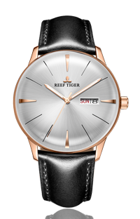 Reef Tiger 經(jīng)典 Heritor 腕表。耐用的不銹鋼玫瑰金表圈還配有可打造專(zhuān)業(yè)外觀的提案和演示。耐用的聚酯前后蓋與協(xié)調(diào)。