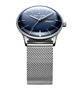 藍色表盤,帶棒狀標記。時、分、秒和日期顯示。這款奢華腕表的表盤 12 點鐘位置印有品牌標識。