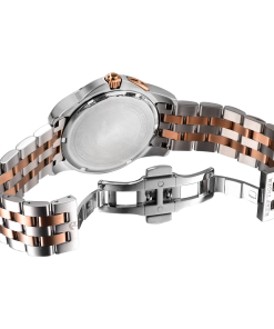 經(jīng)典 Time-Matic 男士腕表。耐用的不銹鋼玫瑰金表圈也適合打造專業(yè)的提案和演示。耐用的聚酯前后蓋與協(xié)調(diào)一致。