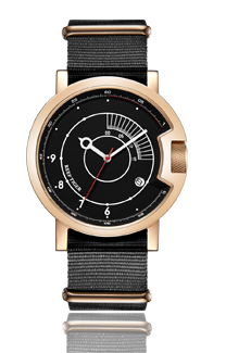 黑色表盤,帶阿拉伯?dāng)?shù)字標(biāo)記。時(shí)、分、秒和日期顯示。這款奢華腕表的表盤 8 點(diǎn)鐘位置印有品牌標(biāo)識。