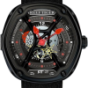 四層表盤,指針和指針上的亮綠色夜光 Luminova 位于藍(lán)寶石玻璃下方,24 小時指示器也是如此。時針、分針、小秒針和 24 小時指針顯示。這款豪華手表在表盤 12 點鐘位置有其標(biāo)志。